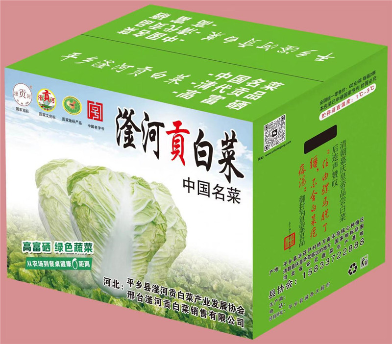 平乡滏河贡白菜个头均匀,软叶多,色泽新鲜,外叶淡绿色、内叶白色;菜头瓷实,结球紧实、圆润;每棵净菜3.5公斤左右。腌渍、炖炒、做馅、生吃均可。口感好、汁白如奶、味甜可口、下锅易烂。经谱尼公司等权威机构检测,内在品优良:富含多种维生素,高硒高钙高蛋白,低脂肪低糖低纤维,无农药残留、无重金属超标,还具有排毒润肠、养颜护肤,营养和药用双重价值。