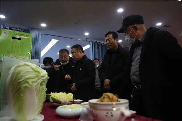 会后,工作人员展示介绍了平乡滏河贡白菜,与会人员现场品鉴了滏河贡白菜大锅菜菜品。
